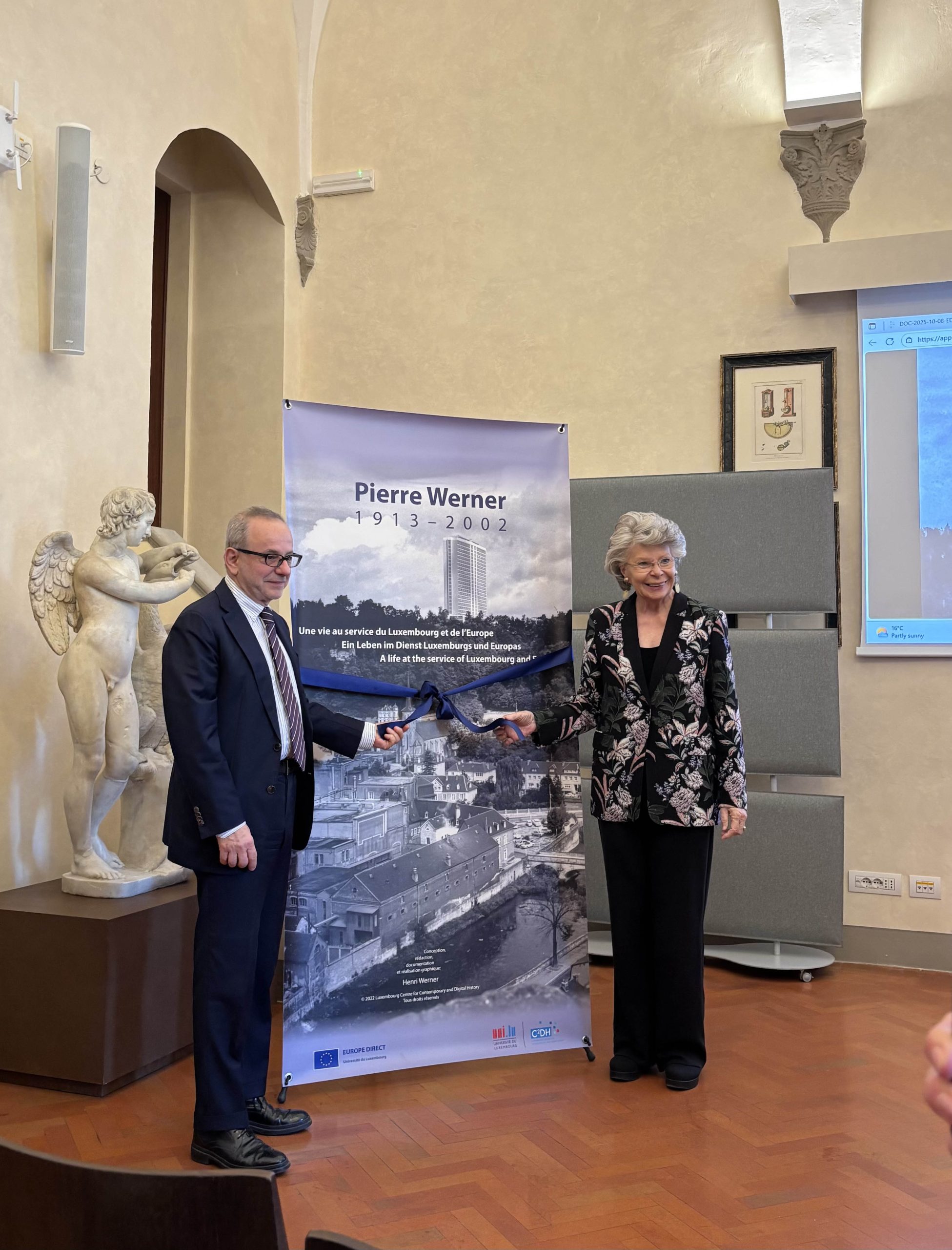 The exhibition officially opens on 11 November 2025, as part of a public event dedicated to historical research and archives, with Viviane Reding, President of the Fondation du Mérite Européen and former Vice-President of the European Commission, Dr Marco Barucco, Secretary General of the EUI, Dr Dieter Schlenker, Director of the HAEU, and Dr Elena Danescu, Coordinator of the ED-UNILU.